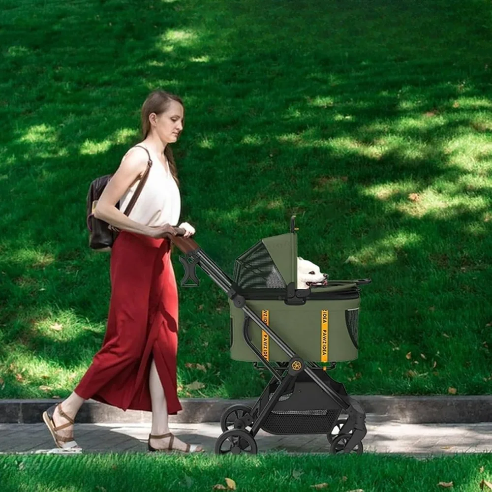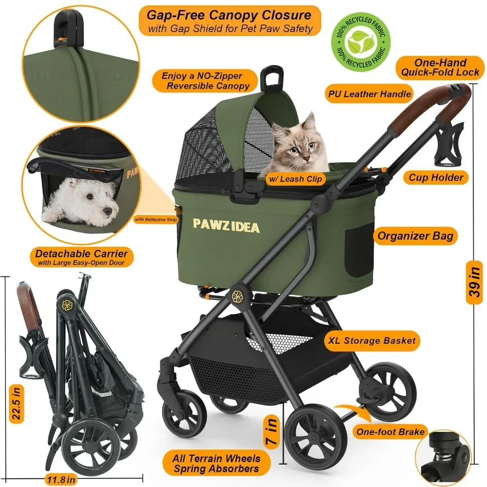 • 4-IN-1 Pet TRAVEL SYSTEM -Pet Stroller + Detachable Travel Carrier + Seatbelt Dogs Booster Car Seat Combo + Dogs/Cats House. Removable and washable canopy and seat cushion. Pet stroller with removable carrier with a larger easy-open zipper door allows your fur-kids to get on and off the puppy stroller freely.