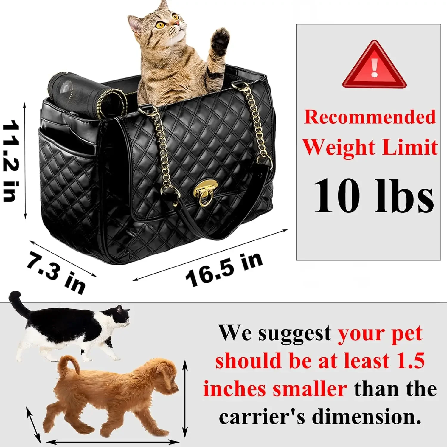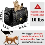Description: The Fashion Dog Purse Carrier is a stylish and comfortable travel solution for your pets weighing up to 10 lbs. Designed with your pet’s comfort in mind, this carrier features a spacious interior, ensuring they feel relaxed and secure.