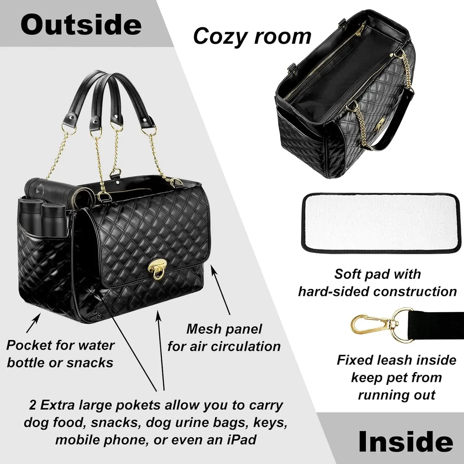 - High-Quality Accessories: Soft pad with a hard-sided construction and a fixed leash to keep your pet secure.