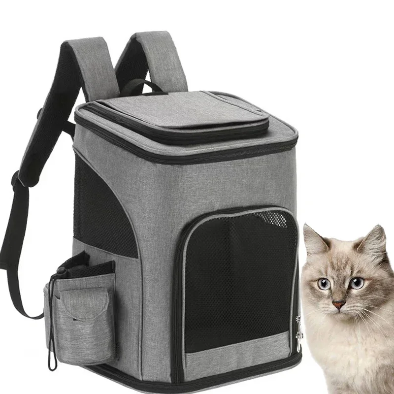 【Premium and Functional】- Made of quality polyester, this cat carrier backpack is sturdy and safe for your pets. 2 side pockets to store pet supplies, and a built-in safety leash to prevent your pet from running away.