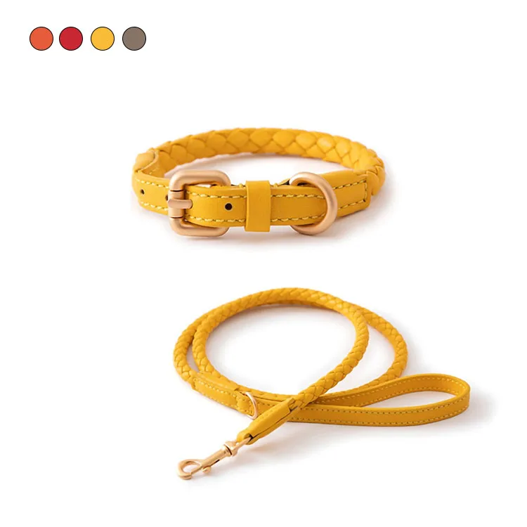 This personalized PU leather dog collar and leash set is designed for small to medium-sized dogs, combining style, strength, and durability.
