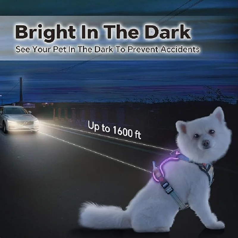 3. Rechargeable LED lights enhance visibility during nighttime or low-light walks. USB charging for easy use.