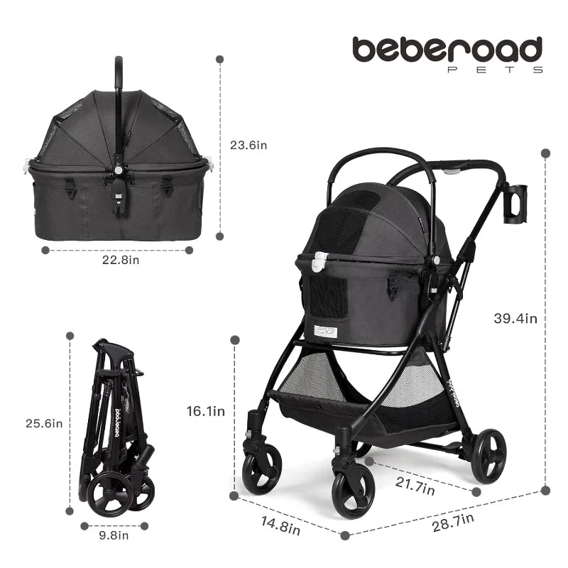 - Premium-Quality Materials: Crafted with a sturdy aluminum alloy frame and a durable 600D Oxford cloth cabin, this pet stroller is built to withstand claws and biting, ensuring long-lasting use.