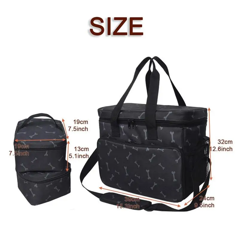 1.Large Capacity Compartment: This dog travel bag will make packing and organizing your pet’s belongings a breeze. It has a spacious main compartment. You can also use the removable internal dividers to create separate sections for different items. The bag measures 39cm L x 24cm W x 32cm H when fully open, so you can fit everything your furry friend needs.