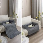 This removable and washable velvet pet bed sofa blanket provides warmth and comfort for medium to large dogs. Designed to protect your couch while offering a cozy spot for your pets, it features a breathable construction and comes with a neck pillow for added support.